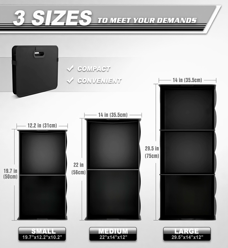 Hjem / Produkter / Bagageopbevaringspose / H-02 3 Størrelse Bærbar sammenfoldelig vandtæt bagagerumsopbevaringspose til enhver bil